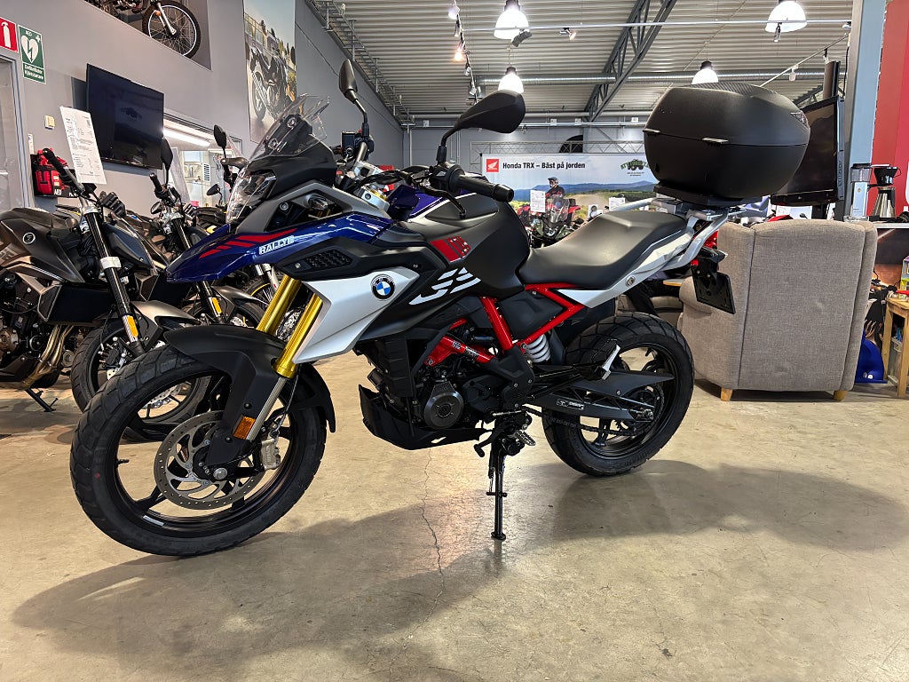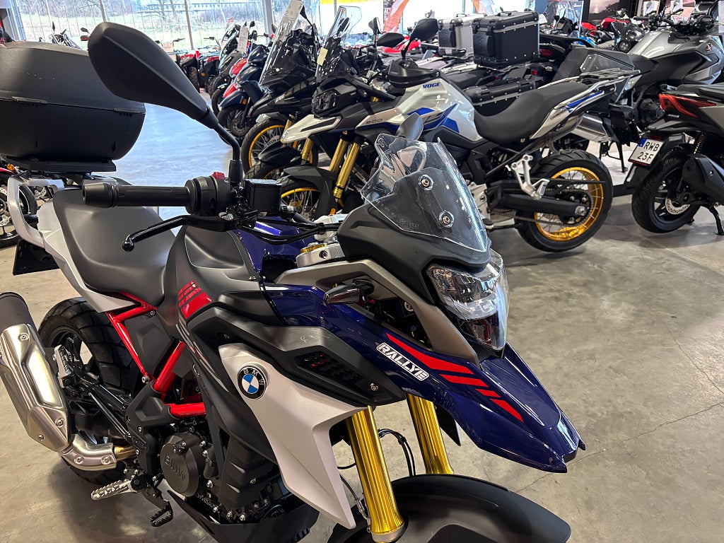 - led blinkers. Levereras med 100mil / 3 mån SMR garanti. Reg.nr: FUF35L BMW G310GS Rallye G310 GS G 310 GS G310 G 310 ABS Adventure ABS Touring Street Rallye Finansiering Vi har nöjet att kunna erbjuda denna BMW G310 GS 2022. Vi köper - förmedlar - förmedling och byter in er mc