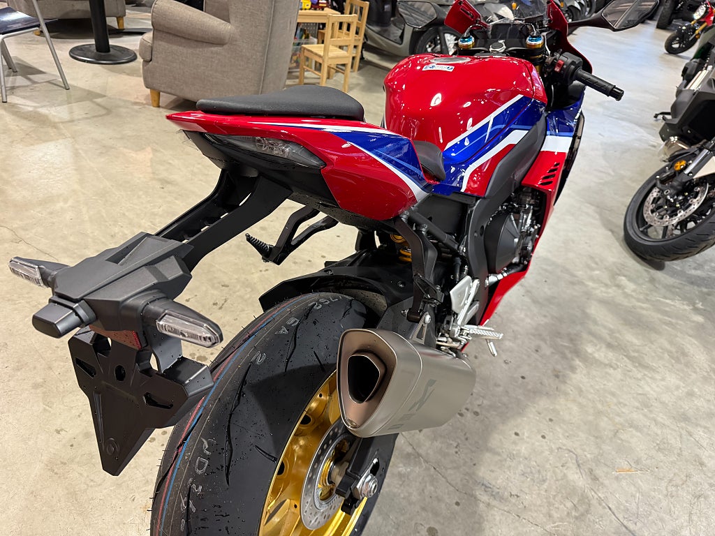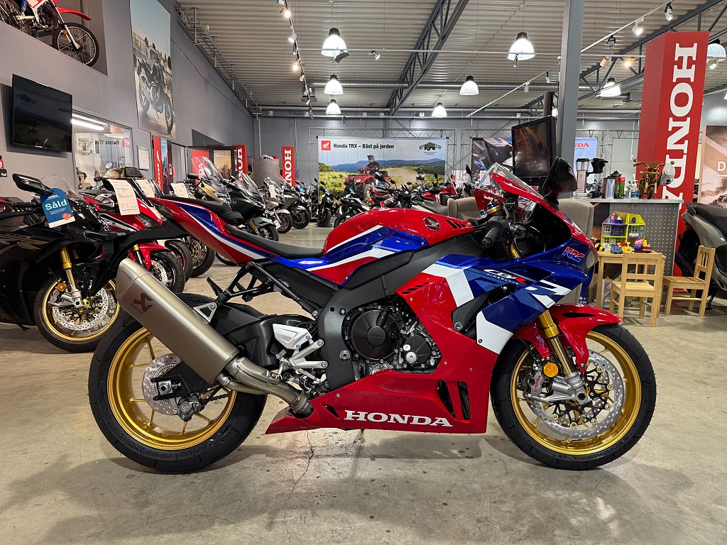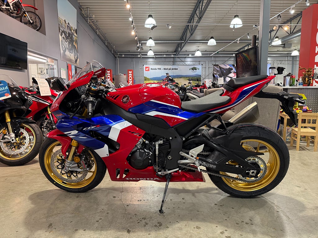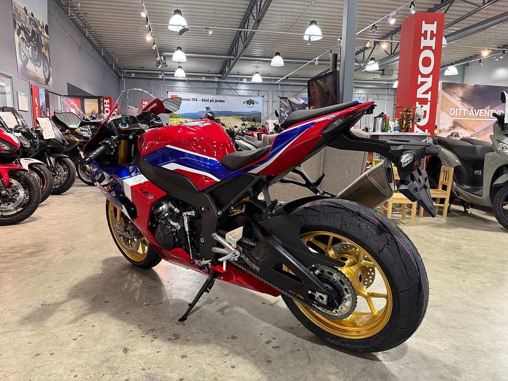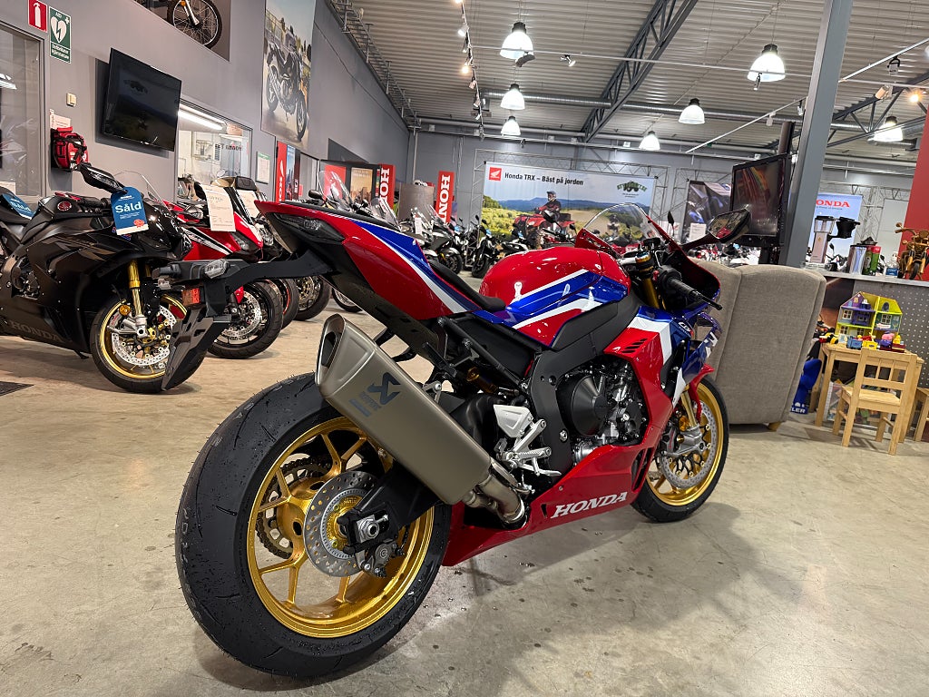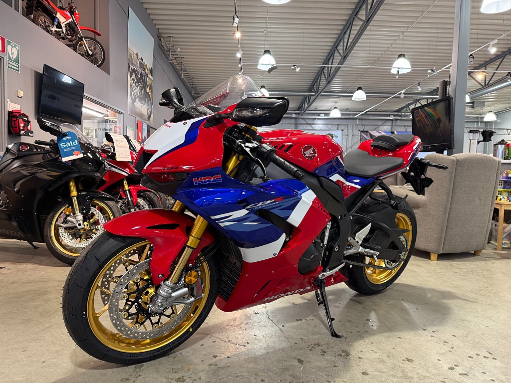 - motorbroms och framhjulslyft finns ett nytt justerbart startläge. Den elektroniskt styrda Öhlinsfjädringen med inställningssystemet OBTi håller absolut världsklass och detsamma gäller bromsarna från Brembo. Och en 6-axlad tröghetsmätare (IMU) och en elektronisk styrdämpare med 3 nivåer bidrar till total kontroll. Kåpor och körställning är kompromisslöst anpassade för minsta möjliga luftmotstånd. Instrumenteringen består av en rejäl färgskärm och maskinen är utrustad med Hondas praktiska smartnyckelsystem keyless. Honda CBR1000RR CBR1000RRR CBR1000RR-R CBR1000 RR RR-R CBR 1000RR 1000RR-R CBR 1000 RR-R RR Fireblade SP SP1 SP2 Sporthoj Sport Finansiering Vi har nöjet att kunna erbjuda denna Honda CBR1000RR-R Fireblade SP 2023. Vi köper - förmedlar - förmedling och byter in er mc