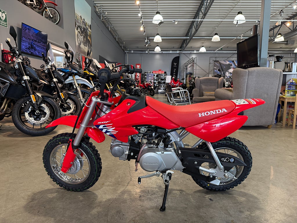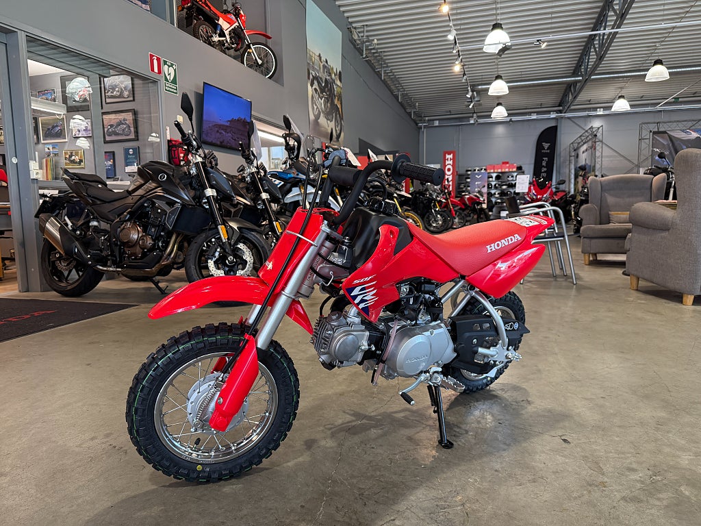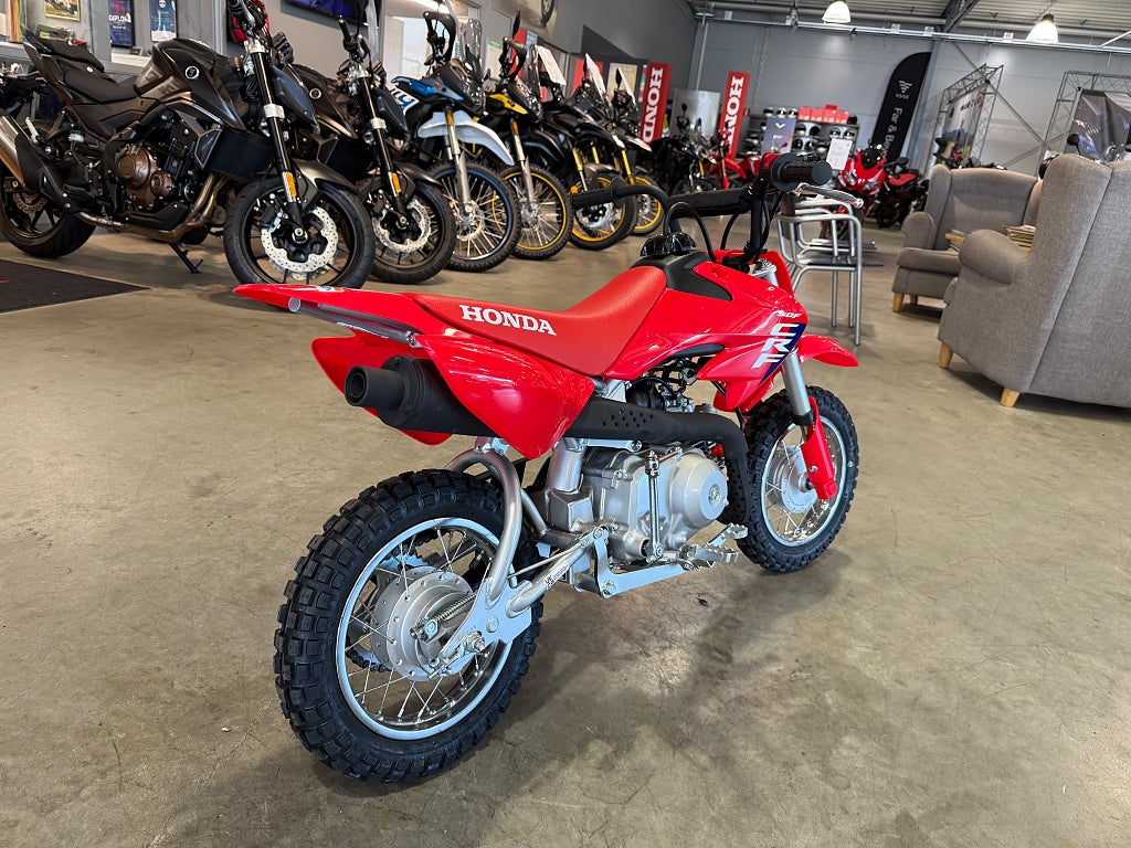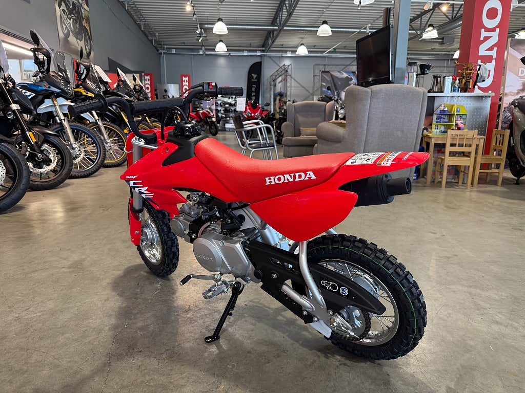 - Honda CRF50F är den perfekta nybörjarhojen för barn som vill prova på motocross. Den lilla maskinen har en körglad och driftsäker luftkyld fyrtaktsmotor på 49 kubik med praktisk automatkoppling som underlättar att komma igång med körningen. Nybörjare brukar också känna sig trygga med de små 10-tumshjulen och den låga sadelhöjden. För de små nybörjarna är det viktigaste att ha kul