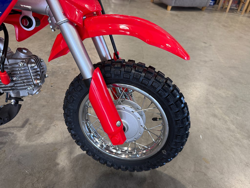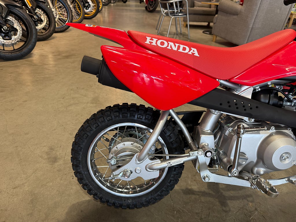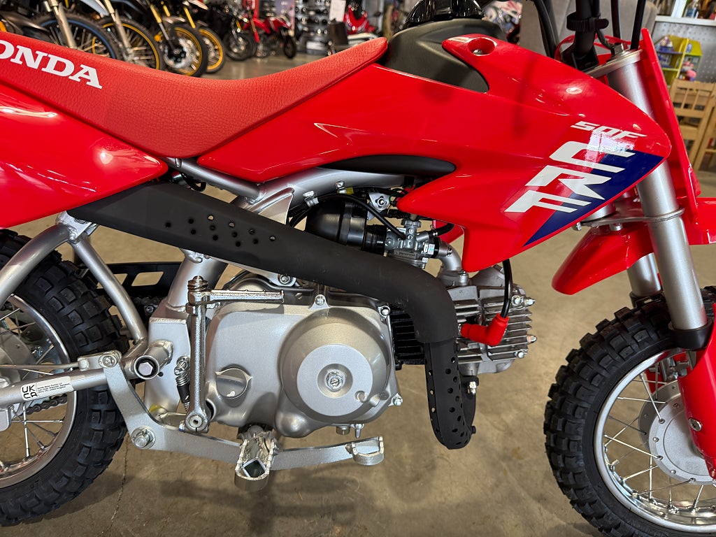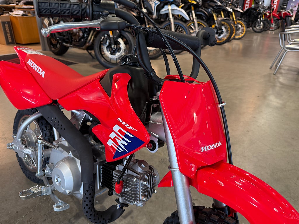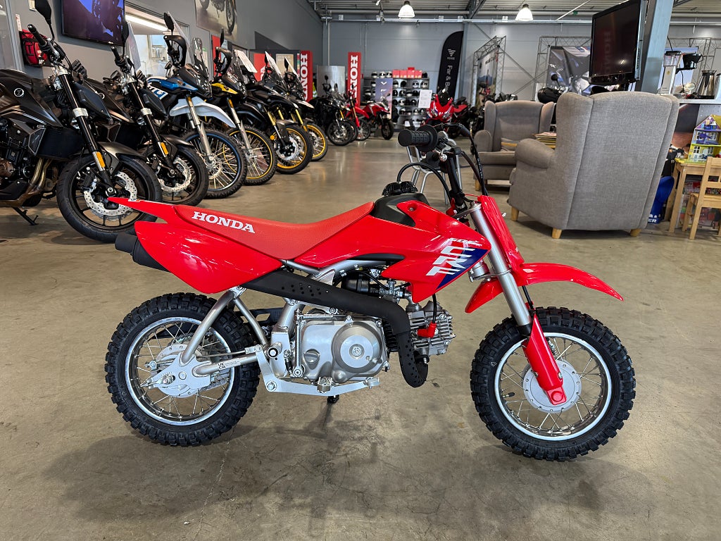 - Honda CRF50F är den perfekta nybörjarhojen för barn som vill prova på motocross. Den lilla maskinen har en körglad och driftsäker luftkyld fyrtaktsmotor på 49 kubik med praktisk automatkoppling som underlättar att komma igång med körningen. Nybörjare brukar också känna sig trygga med de små 10-tumshjulen och den låga sadelhöjden. För de små nybörjarna är det viktigaste att ha kul