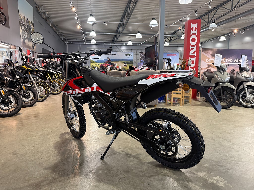 - MRT-serien tar Rieju 50cc till en ny nivå. CAD-utvecklad och kompakt "dualbeam"-chassi ger den ultimata viktfördelningen både på och utanför vägen. Längre hjulbas ger förbättrad vridstyvhet vid aktiv körning. Den moderna karossen och strålkastarnas design skapar en MC-look. Med den senaste Minarelli AM6 vätskekylda 2-taktsmotorn och den 6-växlade lådan får du kraften på rätt ställe. Digital multifunktionsdisplay för hastighet m.m. EU45 moped Klass 1. Euro 5+ Finansiering Vi har nöjet att kunna erbjuda denna Rieju MRT 50 Enduro 2025. Vi köper - förmedlar - förmedling och byter in er mc