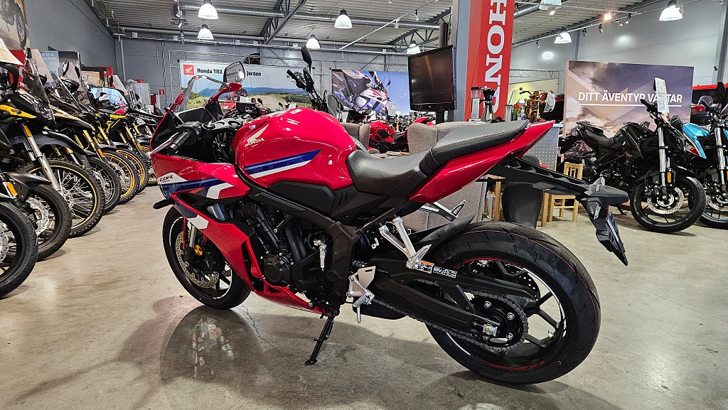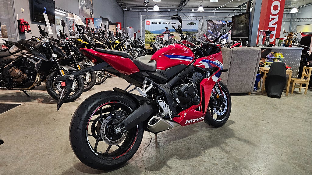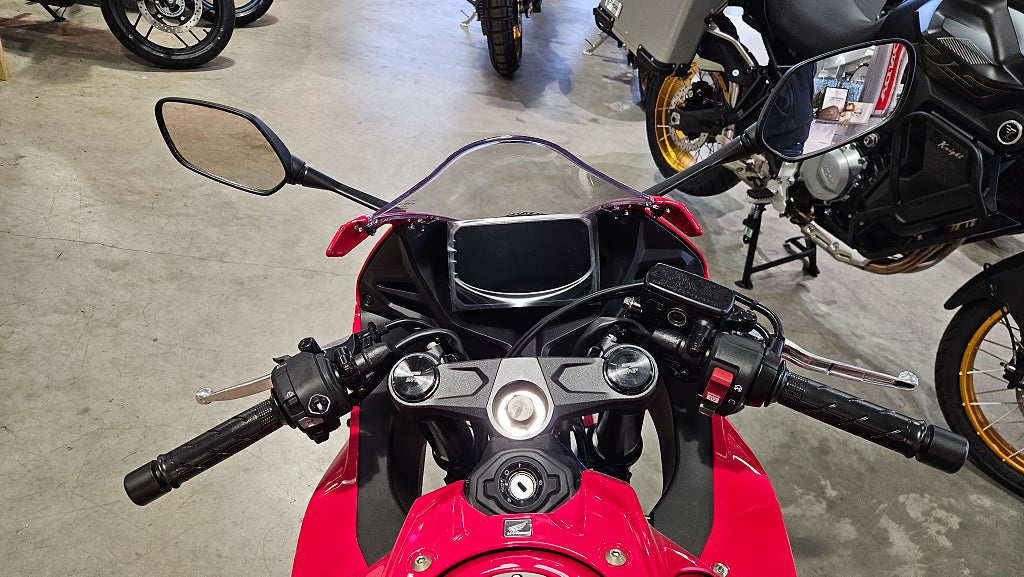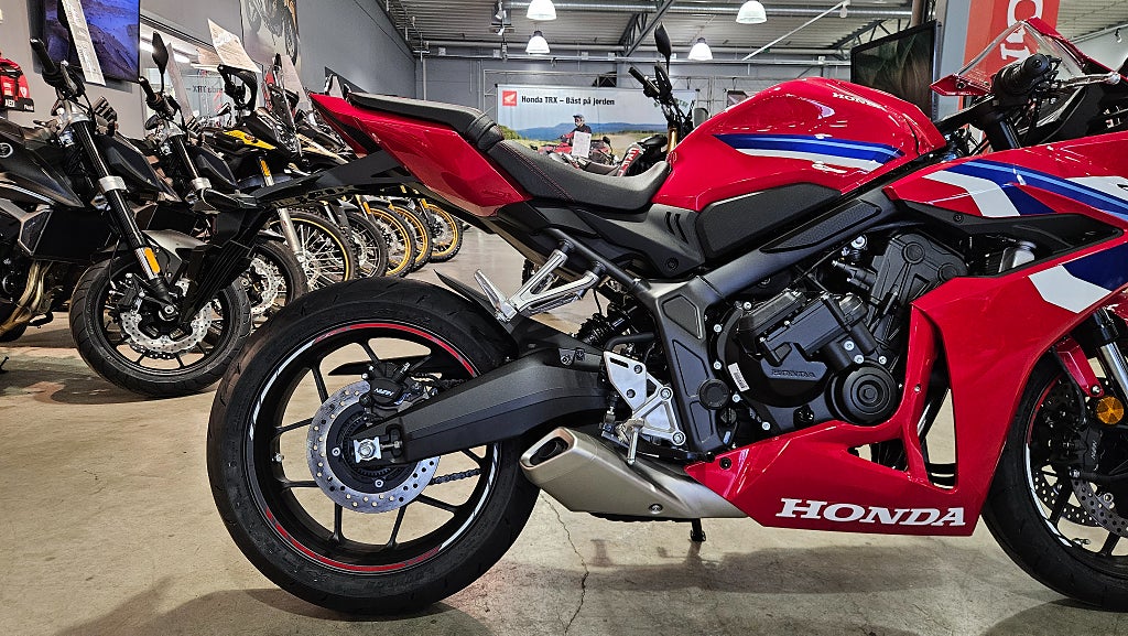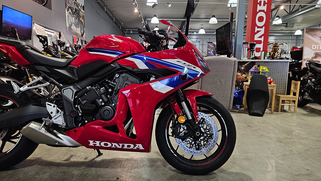 - dubbla radialmonterade fyrkolvsok fram och greppiga däck med dimensionen 120/70-ZR17 fram och 180/55-ZR17 bak. Fulltankad och körklar 211kg med E-clutch. 5 års Honda garanti. Honda CBR650R CBR650RC CBR650 R RC CBR 650R 650RC CBR 650 R RC Sport Sporthoj Finansiering Vi har nöjet att kunna erbjuda denna Honda CBR650R E-Clutch 2026. Vi köper - förmedlar - förmedling och byter in er mc