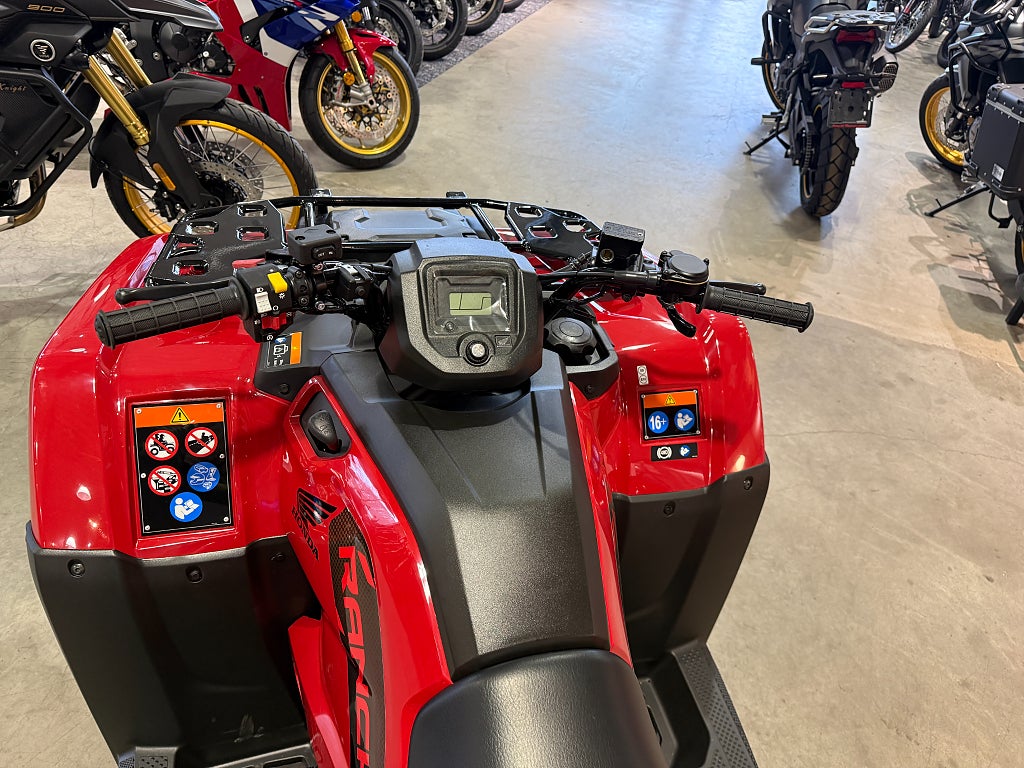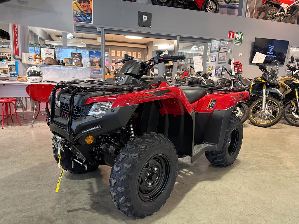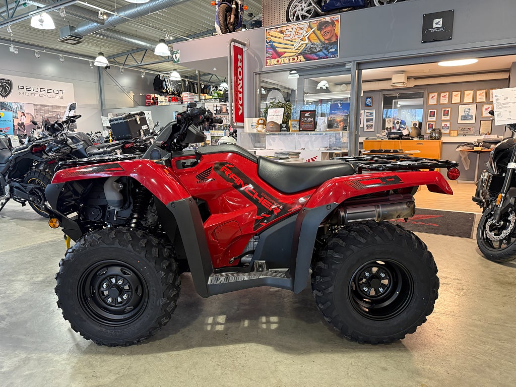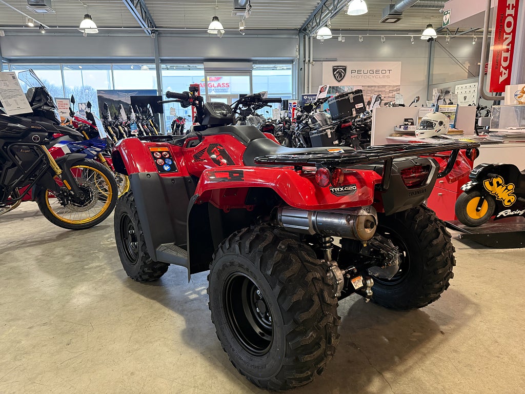 - TRX'ns geometri bibehålls och vagnens tyngd påverkar inte fjädringen. Halvautomat med fotväxel och ingen remdrift för bättre driftsäkerhet och styrkan redan på dem låga varven. Den elektriska styrservon gör körningen lätt och behaglig oavsett vilken terräng man är i. Finansiering Honda TRX420FPM TRX420 FPM TRX 420FPM TRX 420 FPM Rancher ATV Fyrhjuling Vi har nöjet att kunna erbjuda denna Honda TRX420FPM Rancher 2026. Vi köper - förmedlar - förmedling och byter in er mc