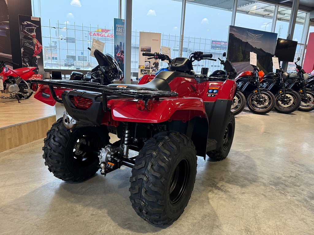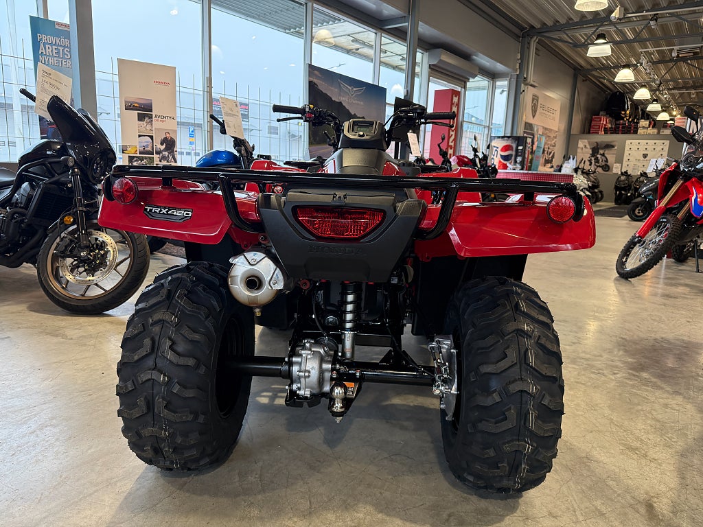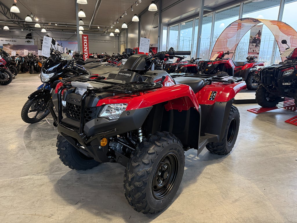 - TRX'ns geometri bibehålls och vagnens tyngd påverkar inte fjädringen. Halvautomat med fotväxel och ingen remdrift för bättre driftsäkerhet och styrkan redan på dem låga varven. Den elektriska styrservon gör körningen lätt och behaglig oavsett vilken terräng man är i. 5 års Honda garanti. Finansiering Honda TRX420FPM TRX420 FPM TRX 420FPM TRX 420 FPM Rancher ATV Fyrhjuling Vi har nöjet att kunna erbjuda denna Honda TRX420FPM Rancher 2026. Vi köper - förmedlar - förmedling och byter in er mc