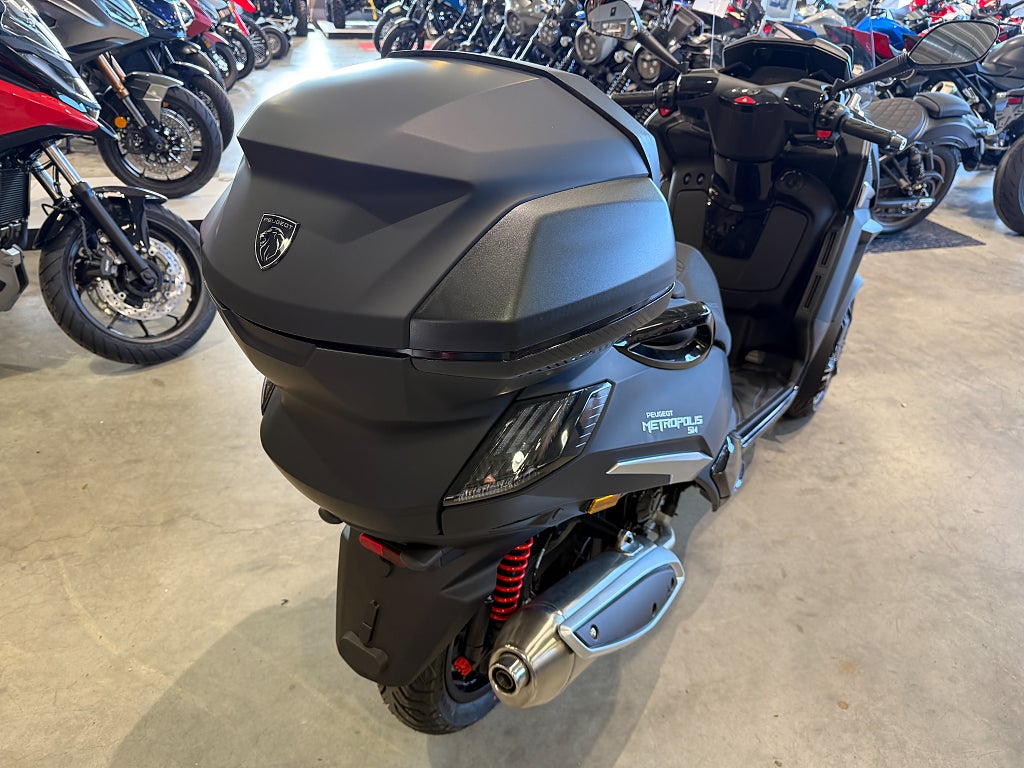 - Du kör Peugeot Metropolis med bil eller MC-kort. och här får du mer komfort och mer utrustning för pengarna. Plant golv ger en mycket stabil körställning. En mycket "förlåtande" framvagn och fjädring som sväljer dom flesta ojämnheterna ger en säker och bekväm körning. i-Connect Key-less smartkey (nyckel kan ligga kvar i fickan) Antispinn Elektrisk handbroms Däcktrycksvarning Färddator Manuellt anti-tilt system Centrabroms (CBS) & ABS Generöst förvaringsfack under sadeln för integralhjälm och dator Varningsblinkers aktiveras automatiskt vid nödinbromsning Finansiering Peugeot Metropolis Metropolis400 400 trehjuling Piaggio MP3 Yamaha Tricity Vi har nöjet att kunna erbjuda denna Peugeot Metropolis SW 400 ABS 2026. Vi köper - förmedlar - förmedling och byter in er mc