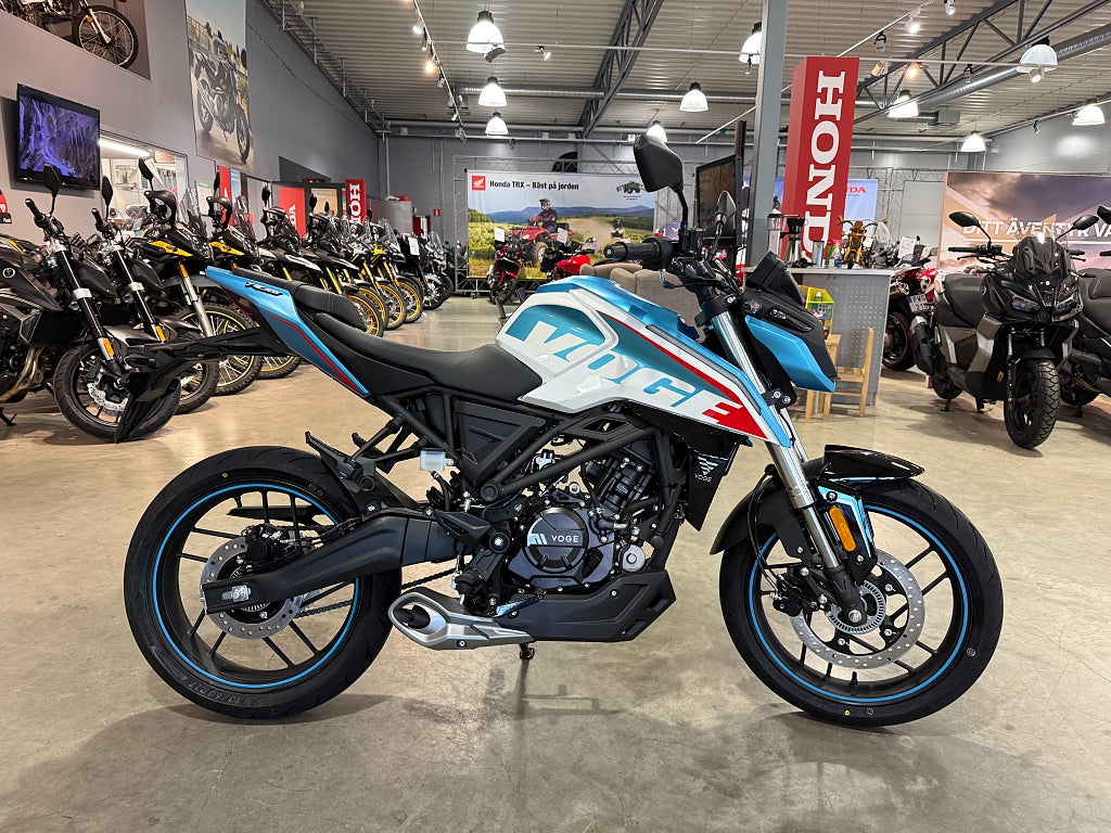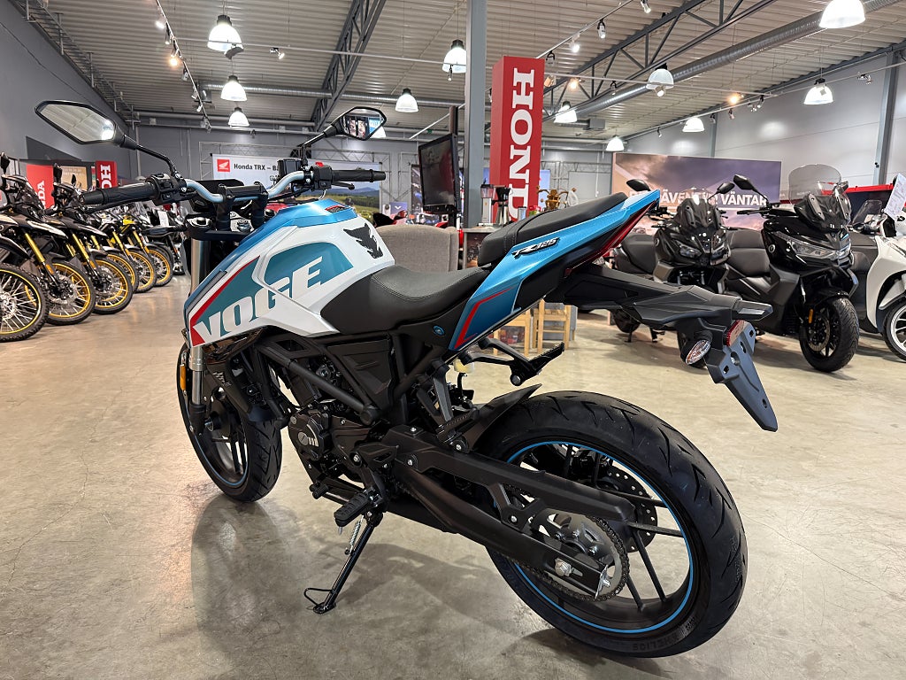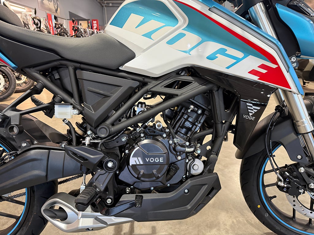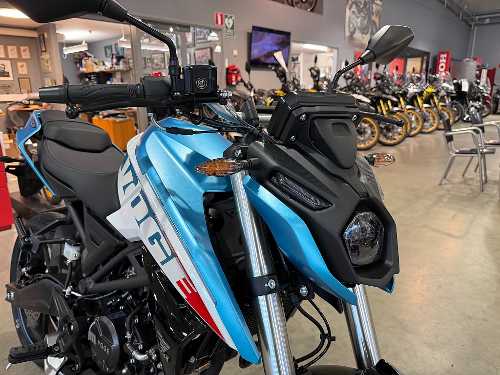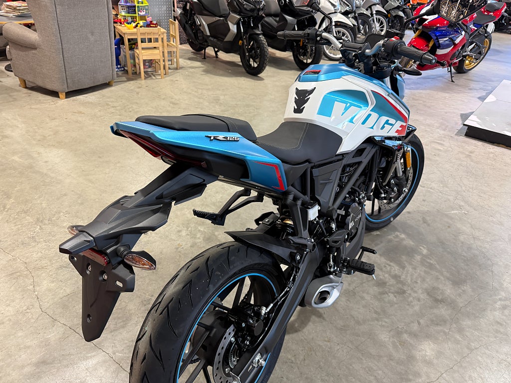 - Voge R125 är en sportig naked bike designad för både nybörjare och erfarna motorcyklister som söker en lättkörd och stilren motorcykel. R125 är utrustad med en vätskekyld encylindrig 125 cc motor som levererar 15 hästkrafter och ett vridmoment på 12 Nm vid 8000 varv per minut. Denna motor